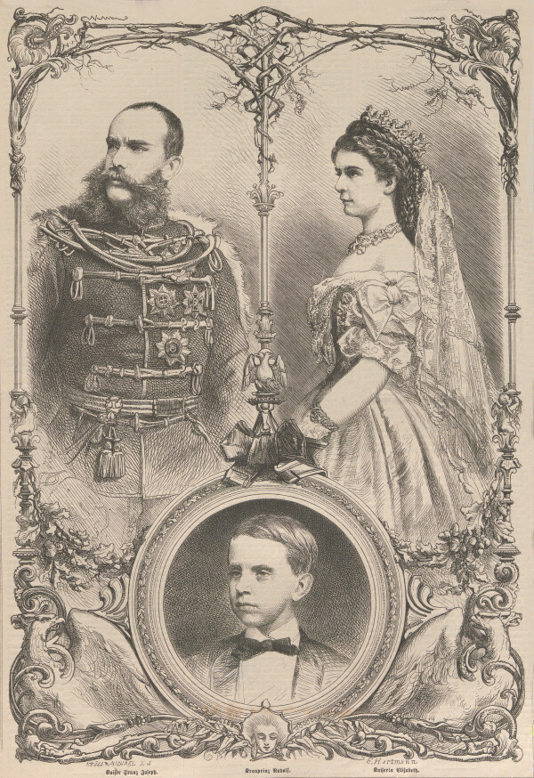 Xylograph after Ernst Hartmann: The Imperial Family, Emperor Franz Joseph, Empress Elisabeth, Crown Prince Rudolf, around 1870