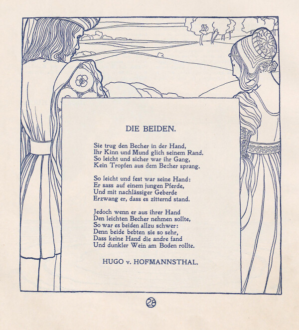 Hugo von Hoffmannsthal: The Two, illustrated by Friedrich König, in: Vereinigung bildender Künstler Österreichs Secession (Hg.): Ver Sacrum. Zeitschrift der Vereinigung bildender Künstler Österreichs, 2. Jg., Heft 2 (1899).