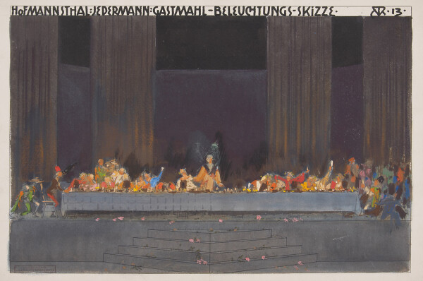 Alfred Roller: Stage design for "Jedermann" by Hugo von Hofmannsthal, banquet scene, 1913, Theatermuseum, Vienna