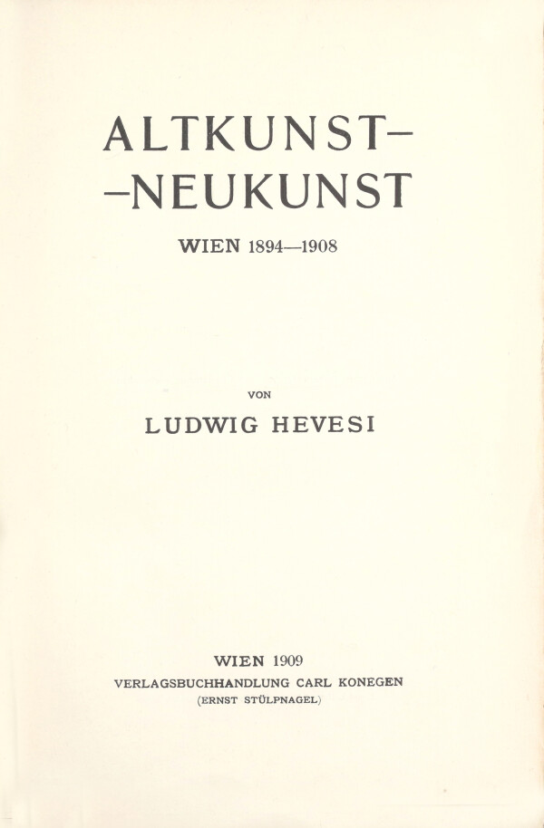 Ludwig Hevesi: Altkunst – Neukunst, Vienna 1909.