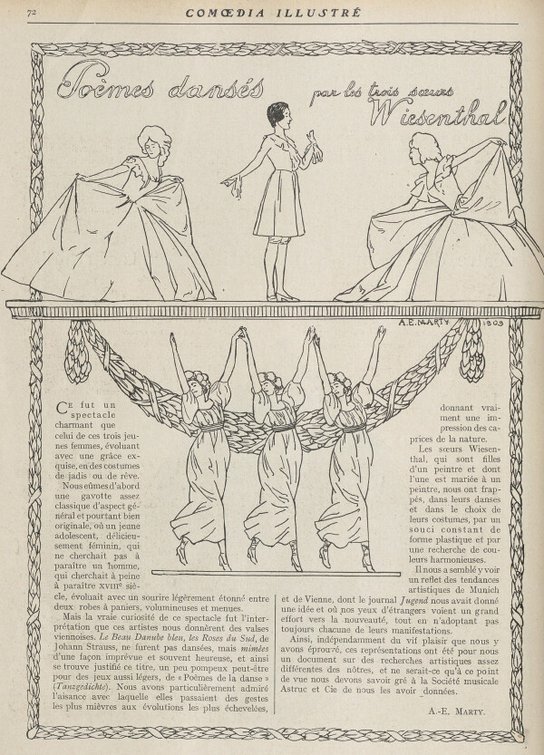 Sisters Wiesenthal at the Vaudeville Theater, Paris, in: Comedia illustré. journal artistique bi-mensuel, 2. Jg., Nummer 3 (1909).