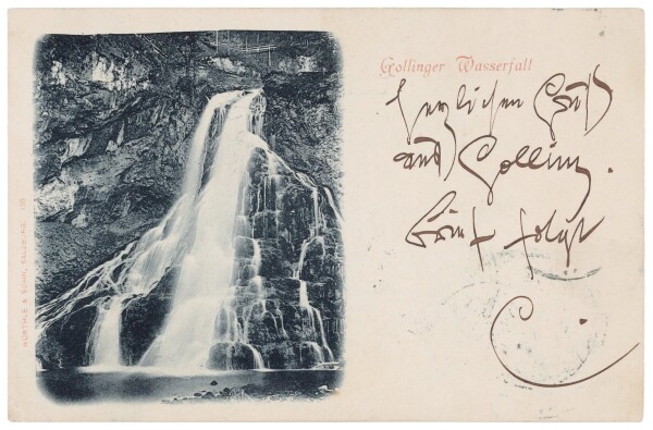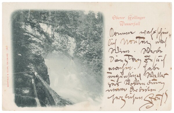 - Ansichtskarte von Gustav Klimt in Golling an Maria Zimmermann in Wien (20.08.1899). S64/6.