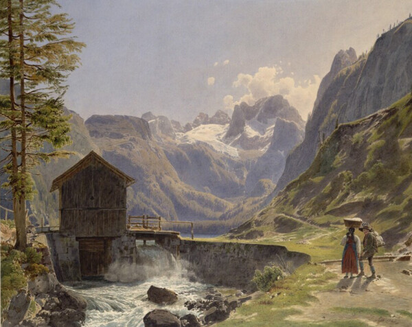 Rudolf von Alt: The Dachstein in the Salzkammergut from the Vorderer Gosausee (peep-box sheet), 1840