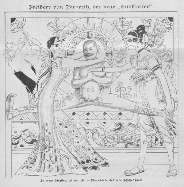 Caricature of Minister of Education Richard Bienerth with the Association, the Hagenbund and the Künstlerhaus, in: Figaro, 14.10.1905.
