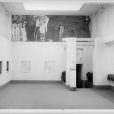 The 3rd Exhibition in 1899, presenting Max Klinger’s monumental painting Christ on Olympus, was particularly sensational, yet Gustav Klimt’s Faculty Paintings, when exhibited at the Secession, would cause a bigger scandal: Philosophy (1900), Medicine (1901), and Jurisprudence (1903). Among the most important exhibitions were the 6th Exhibition (1900), featuring Japanese art, the 8th Exhibition (1900), which showcased European arts and crafts, a memorial exhibition for Giovanni Segantini (1901), participation in the “Deutschnationale Kunstausstellung” [“German National Art Exhibition”] in Düsseldorf (1902), and the 14th Exhibition (1902), for which Klimt conceived the Beethoven Frieze. The “Kollektiv-Ausstellung Gustav Klimt” [“Gustav Klimt Collective Exhibition”] (1903/1904) and the Secession’s 19th Exhibition (1904), featuring pioneering works by Ferdinand Hodler, were also particularly noteworthy.