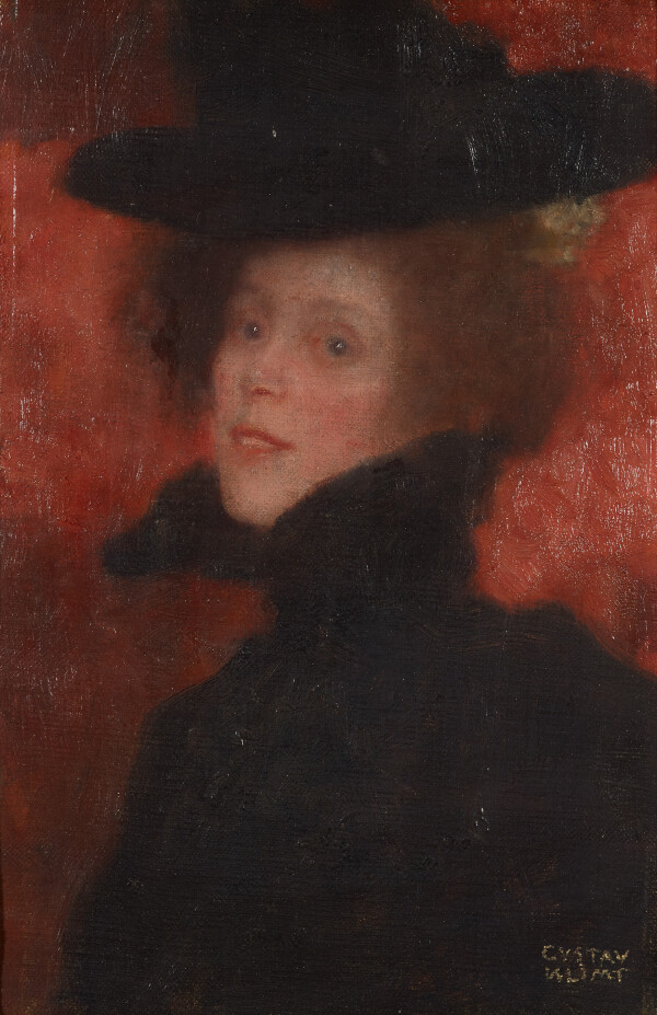 Gustav Klimt: Lady with Cape and Hat against a Red Background, 1897/98, Klimt Foundation