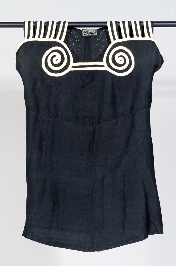 For this show, the Klimt Foundation is providing pieces of jewelry by Josef Hoffmann, made by the Wiener Werkstätte, a bathing dress from the »Schwestern Flöge« fashion salon and photographs showing Gustav Klimt in a painter's smock and Emilie Flöge in her own creations. The exhibits are presented in the context of contemporary paintings, creating an atmospheric overall picture. In addition, the black satin bathing dress, adorned with white spirals on the shoulders, is juxtaposed in the show with an evening dress embroidered with gold sequins from the Valentino fashion house. References to the art of Gustav Klimt, in particular his Stoclet frieze (1905-1911, privately owned), are clearly recognizable.