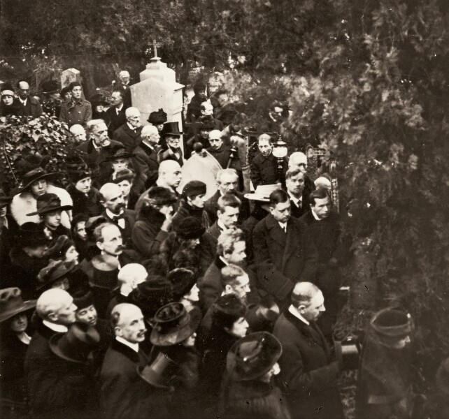 On 11 January, Gustav Klimt suffered a stroke and died a few weeks later, on 6 February, from resulting complications. Egon Schiele paid Klimt his last respects and portrayed him three times on his deathbed. On 9 February, the “prince of painters” was buried at the Hietzing cemetery in the presence of numerous companions. Schiele subsequently tried to take over Klimt’s studio, where the artist had left amongst others the paintings The Bride and Lady with a Fan on the easel unfinished. His colleague’s attempts were in vain, however; Schiele died of the Spanish flu on 31 October. Kolo Moser and Otto Wagner also died in this fateful year.