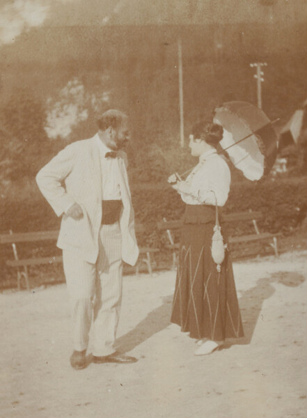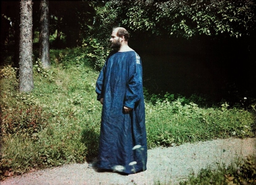 In spring, Klimt sojourned at the Attersee for a few days, while he spent this year’s summer at Lake Garda in Northern Italy, where the artist captured his impressions in three landscape paintings. The return journey took him to Vienna via Tyrol and a brief stopover at the Attersee. In Upper Austria, Friedrich Gerhard Walker took the only known color photographs of Gustav Klimt and Emilie Flöge using the so-called Autochrome Lumière process. Again, Klimt treated himself to a stay at the spa in Bad Gastein.