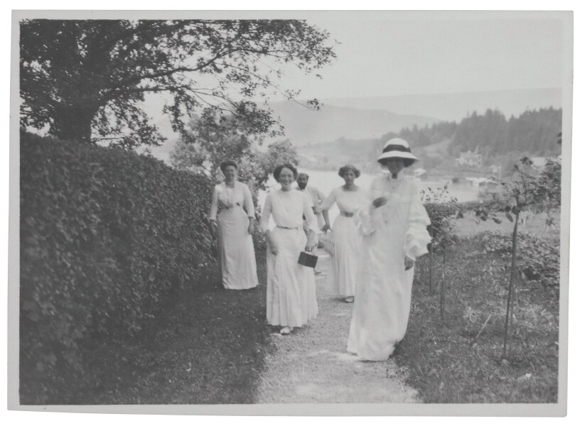 That year, Klimt spent his first summer vacation at the Attersee in Upper Austria in the company of the Flöge family. Further stays were to follow, with the Bräuhof in Litzlberg remaining his preferred accommodation until 1907. From 1900 on, the Villa Paulick – Klimt signed the guest book for the first time on 10 August – would be an inspiring and habitual meeting place during their stays at the lake. He completed several paintings even during this first stay of his, as Klimt mentioned in a letter to Zimmermann. A multitude of photographic snapshots by Emma Bacher (née Paulick, 1867–1953), Heinrich Böhler (1881–1940), Friedrich Gerhard Walker (1873–1934), and others vividly document the Attersee summer retreats of Gustav Klimt and his companions, their refuge of seventeen years.