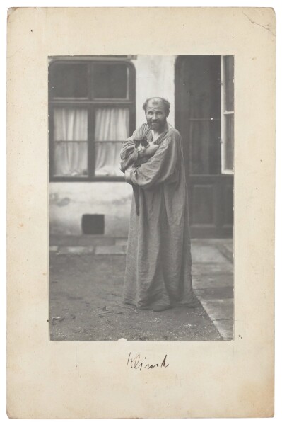 Due to demolition work, the painter was forced to leave his backyard studio in Vienna’s Eighth District (Josefstadt). In May, Moriz Nähr still documented the situation in situ, taking the famous portrait photograph of Klimt with a cat in his arms. The painter temporarily moved into the barely used villa of Helene Hochstetter on Hohe Warte. After only a few months he was able to move into his last studio at No. 11 Feldmühlgasse (formerly No. 9, Vienna’s Thirteenth District, Hietzing), facilitated by Felix Albrecht Harta (1884–1967). Around the same time, the German-American photographer Pauline Hamilton (1870-1918, née Kruger) also captured Gustav Klimt in photographs.