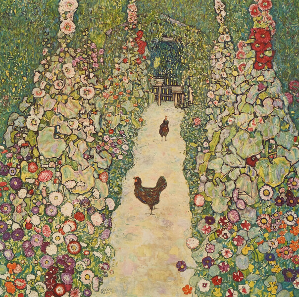 Klimt undertook another trip to the Primavesi family in Winkelsdorf. In the summer, he stayed at the Attersee for the last time, painting, among other pictures, Garden Path with Chickens. This time, he had a visit from Friederike Maria Beer. Erwin Böhler (1877–1950), a cousin of Hans Böhler, bought the small island of Litzlberg.