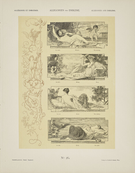 Starting in 1881, in addition to his large-scale decoration projects, Klimt also contributed to Martin Gerlach’s compilation of original designs Allegorien und Embleme. Abtheilung Allegorien [“Allegories and Emblems”], to the part devoted to allegories.