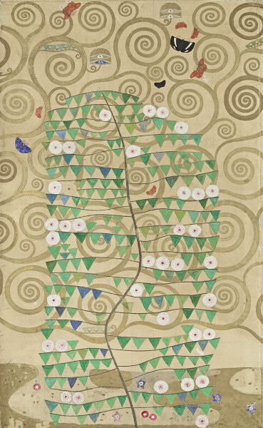 Plans for the Stoclet Palace in Brussels, the quintessence of a Gesamtkunstwerk or universal work of art, became more and more concrete. Involved in the project alongside the Wiener Werkstätte, Klimt received the commission to design the famous Stoclet Frieze. He participated in the Vienna Secession’s 20th exhibition, presenting Water Snakes II for the first time. He also took part in the “Große Kunstausstellung Dresden” [“Great Dresden Art Exhibition”] and the “X. Ausstellung der Münchner Secession” [“10th Exhibition of the Munich Secession”]. The Vienna Secession’s show intended to focus on Klimt’s paintings, which had been planned by Hoffmann for the “St. Louis World’s Fair” in the United States, was not realized.