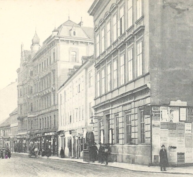 While Gustav Klimt attended elementary and secondary school at No. 61 Lerchenfelder Straße, his family relocated several times. In 1867 they moved from the suburbs to No. 50 Lerchenfelder Straße, into a house named “The Golden Lion” (“Haus zum goldenen Löwen” in Vienna’s Eighth District, Josefstadt). Shortly thereafter, they lived at No. 51 Neubaugasse, in a house called “The Blue Bottle” (“Haus zur blauen Flasche” in Vienna’s Seventh District, Neubau). In 1874, they removed to No. 48 Märzstraße and, after one year, again to No. 40 Märzstraße (Vienna’s Fifteenth District, Rudolfsheim-Fünfhaus).